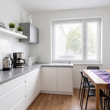 Jede Wohnung ist sauber, komfortabel und voll ausgestattet mit eigener Küche, Badezimmer, Waschmaschine und schnellem WLAN. Ein kostenloser Parkplatz direkt am Objekt ist für uns selbstverständlich.