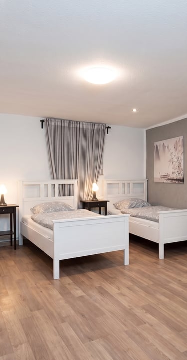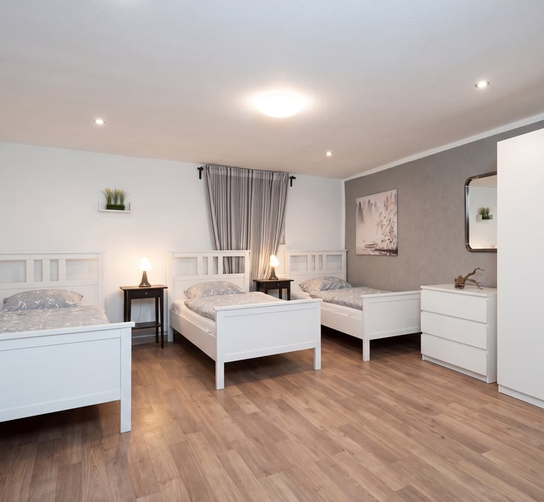 Wir bieten hochwertige Unterkünfte für Gruppen von 2 bis 8 Personen pro Wohnung. Unsere Schlafzimmer sind flexibel als 2- oder 3-Bett-Zimmer verfügbar – ganz nach Ihren individuellen Anforderungen.
